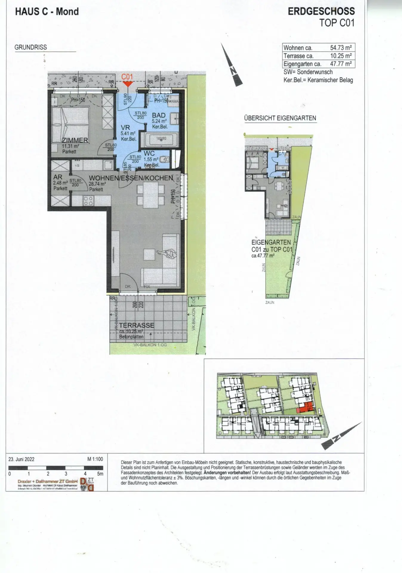 Geniessen Sie das ländliche Leben und gleichzeitig die Dorfidylle: Eine bezugsfertige Gartenwohnung, in zweiter Reihe einer Wohnhausanlage mit 55 Eigentumswohnungen. Die Wohnung liegt völlig ruhig im zweiten Haus und hat eine südseitige Orientierung. Der 47,77 m² große Garten mit 10,25 m² Terrasse, ist ebenerdig zu erreichen. Diese Wohnhausanlage verfügt über Kabel/Sat TV, Postpaket-Box, versperrbare Fahrrad-Abstellräume und die E-Mobilität mit E-Ladestation ist eingerichtet. Die Beheizung findet über eine Luft-Wasserwärmepumpe in Kombination mit einer Gasheizung statt. An der Eingangstüre können Sie auf Sonderwunsch eine Videoeinheit über die bereits installierte Kamera erhalten.