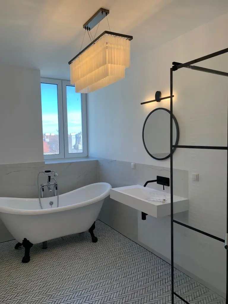 Gas, Etagenheizung, Wohnküche / offene Küche, Personenaufzug, Bad mit Fenster, Badewanne, Dusche, Getrennte Toiletten, Stadtblick, Doppel- / Mehrfachverglasung