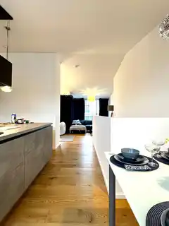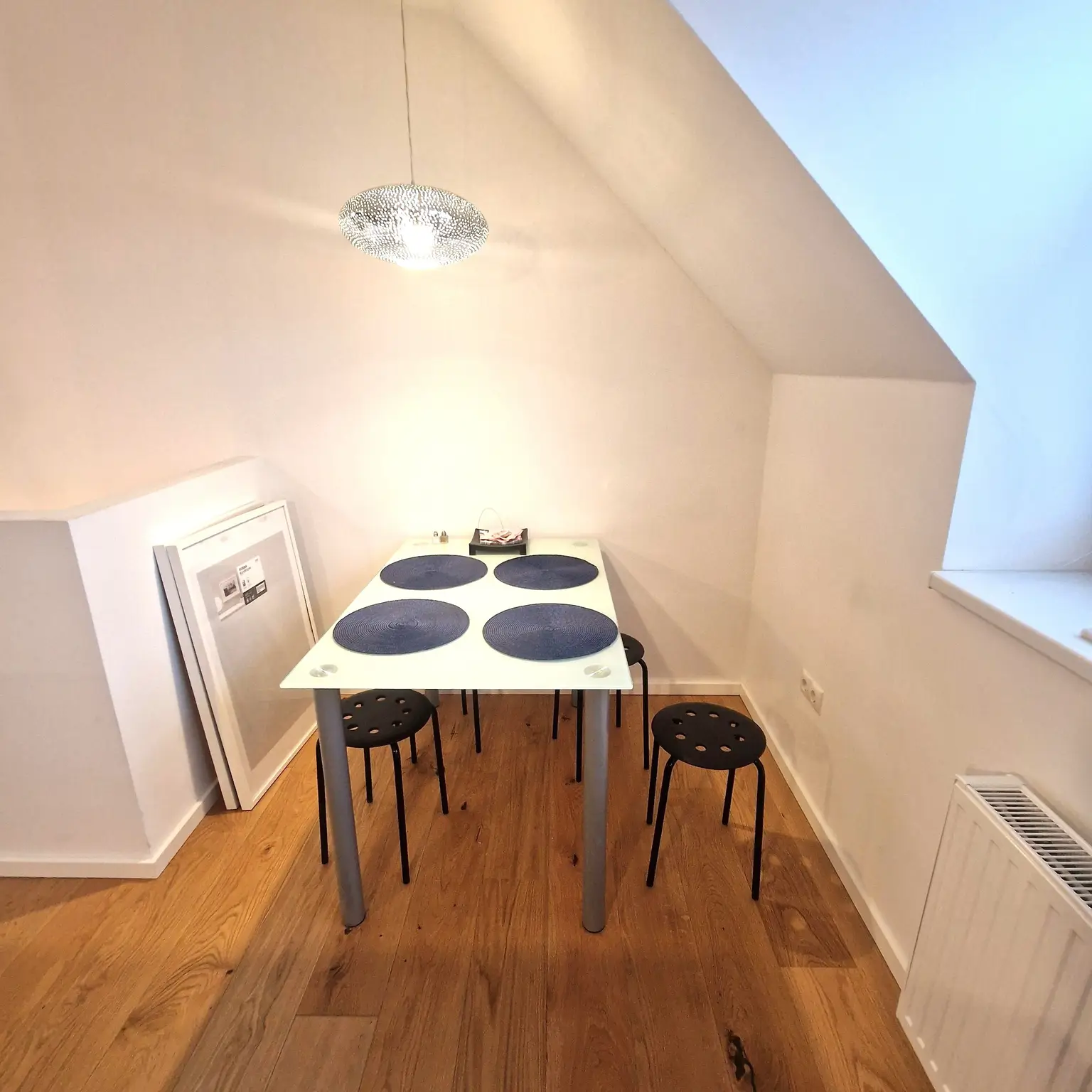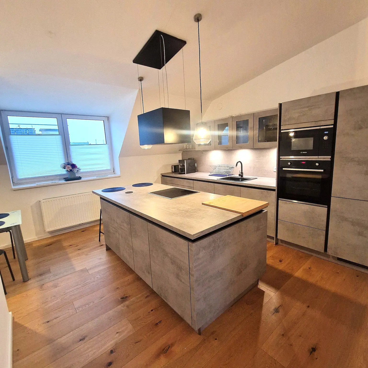 3-room attic apartment in a turn-of-the-century building. The attic floor has been partially rebuilt. The apartment is located between the up-and-coming area of the popular Meiselmarkt and the shopping area of Hütteldorferstrasse. This means that there are numerous shopping opportunities within walking distance, but the Wilhleminenberg recreational area is also within easy reach. This flat was completed about five years ago and is divided into: an entrance hall, a bedroom (windows facing the rear courtyard), another room, a bathroom with shower and bathtub, and a beautiful wooden staircase leading to the attic. There you will find a living room with direct access to the approximately 10 m² terrace (panoramic terrace door), a view of Vienna and a living area. The kitchen (39 m²) is open plan and fully equipped (Bosch). All new Bosch apliances: fridge, stovetop, oven, coth washer, oven hood. The living and sleeping areas are fitted with high-quality parquet flooring, the wet rooms with porcelain stoneware. This flat has a basement storage room. There is a lift in the building.Transport connections: The U3 underground station is two minutes away at Johnstrasse station, as is the bus stop for the 10A bus. Numerous other trams can be reached on Hütteldorferstrasse. The Westautobahn motorway can be accessed from the nearby Hadikgasse. This flat will be handed over furnished.