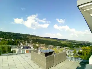 A modern villa over 4 floors with internal lift. This property is in a particularly quiet location in a cul-de-sac for neighbours. The house offers living rooms and bedrooms with bathrooms on each floor. In the basement, with approx. 158 m², there is a fitness room, technical equipment, sauna, wellness shower, a room for an office and a kitchen/dining area with access to the 511 m² garden. On the floor above is the house entrance with cloakroom, kitchen, an almost 60 m² living room and a large window with a view over Neustift am Walde. To the side is a terrace with a view of the greenery. On the next floor there are living rooms and bedrooms, a side balcony, space for an office and wet rooms. The top floor houses bedrooms and guest areas. At the very top is a roof terrace measuring almost 60 m² with panoramic views of the Vienna Woods on one side and the city on the other. The house has two (pick-up-compatible) parking spaces in a garage extension. Energy: The house is heated with geothermal energy and there is a PV system. The villa will be available from June 2025, but viewings are already possible.